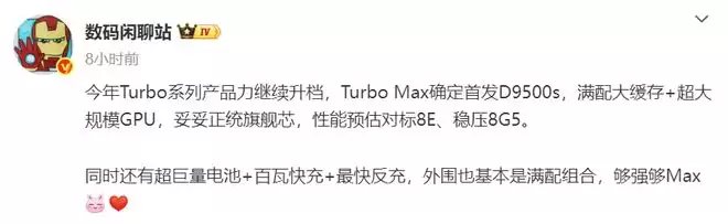 而且有博主已经揭晓了红米Turbo 5 Max最大的王牌,那就是核心配置方面将会首发联发科天玑9500s处理器。