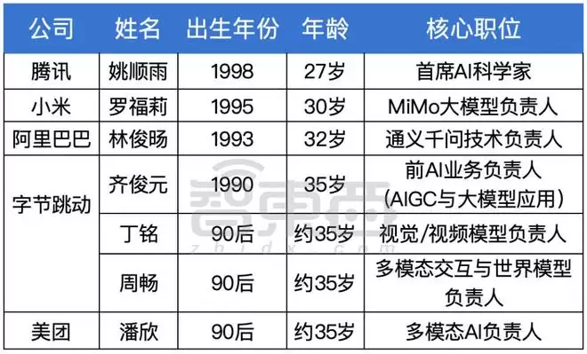 一、互联网AI“少帅”崛起,姚顺雨、罗福莉、林俊旸等90后挑大梁