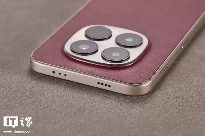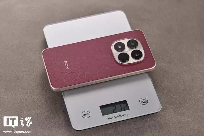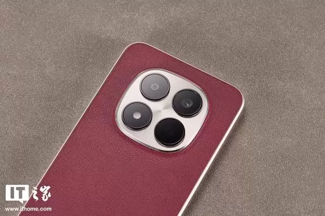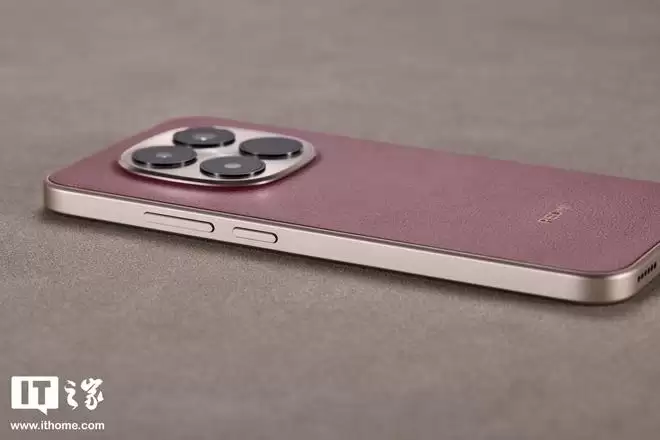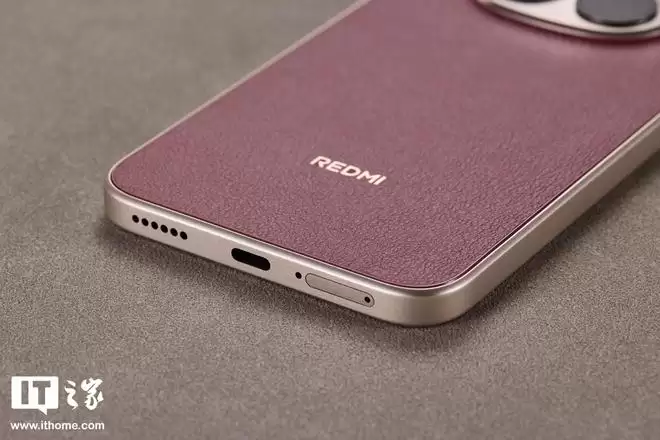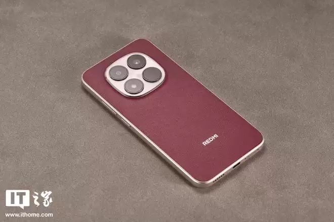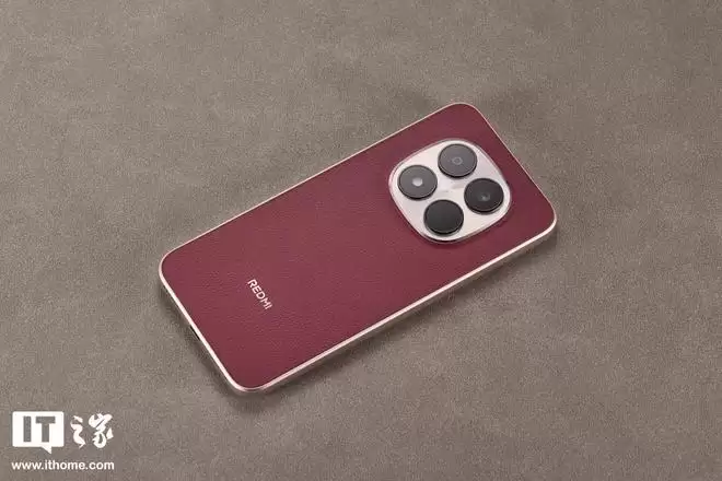 机身背板材质上,REDMI Note 15 Pro「车厘子红」选用了科技纳米皮。