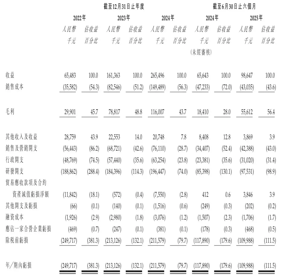 招股书披露,驭势科技2022年至2024年营收分别为6548万元、1.61亿元、2.65亿元;毛利润分别为2990万元、7882万元、1.16亿元;毛利率分别为45.7%、48.8%、43.7%;年内亏损分别为2.5亿元、2.13亿元、2.12亿元。