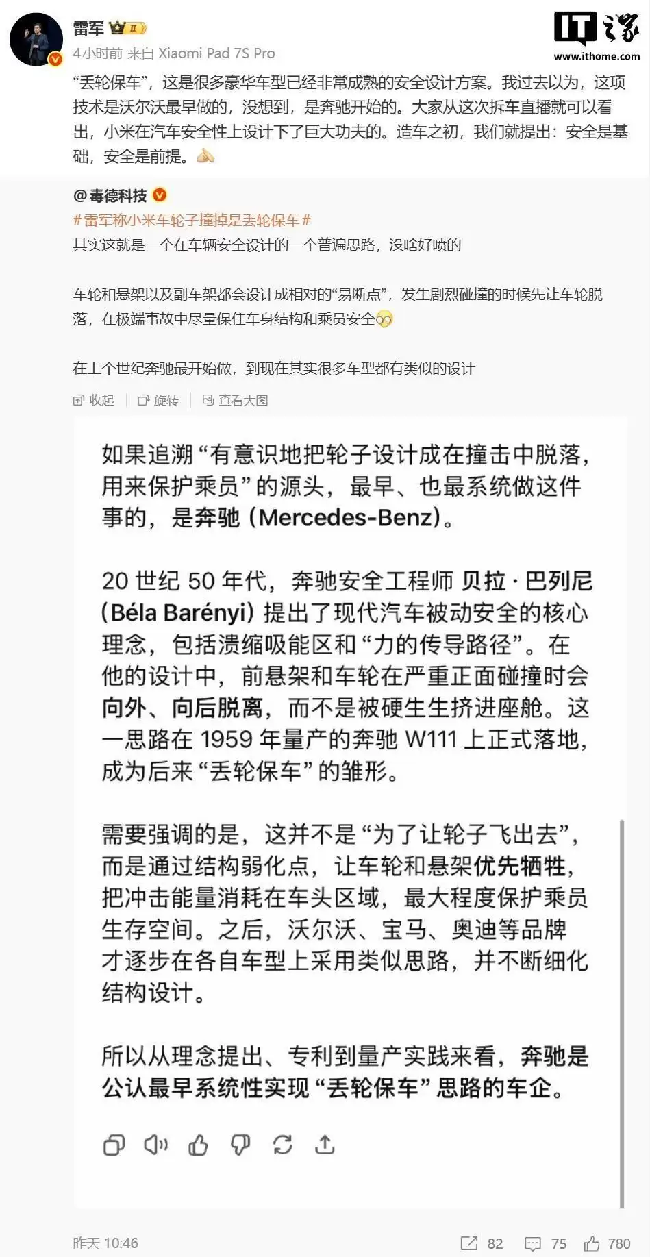 雷军揭秘“丢轮”:奔驰沃尔沃早用的小米YU7安全设计