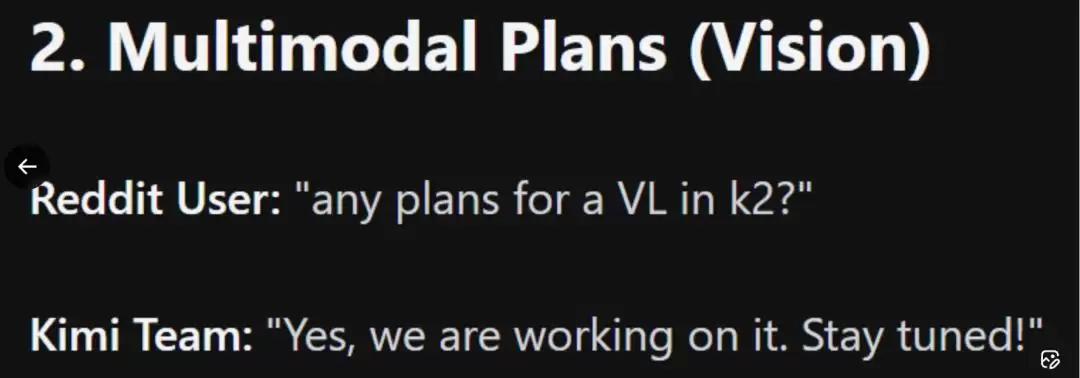 这一猜测并非空穴来风。月之暗面创始人杨植麟此前就在Reddit上正面回复网友称,VL模型正在测试中。在12月31日发布的公开信中,杨植麟也提到2026年有发布新模型的计划。另据《科创板日报》稍早前的消息,Kimi计划在今年一季度上线多模态新模型,型号可能是K2.1或K2.5。