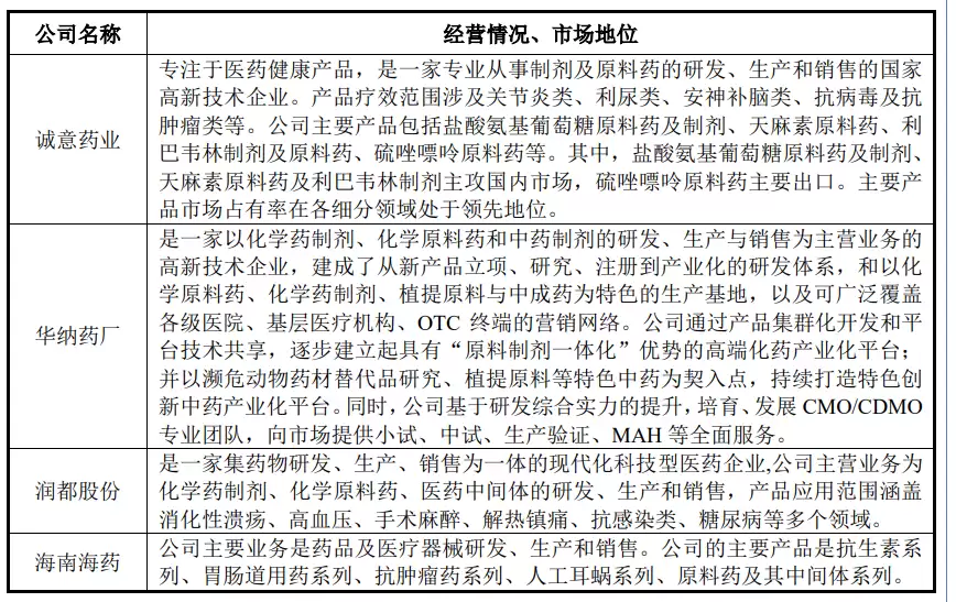 延安医药与可比公司对比情况: