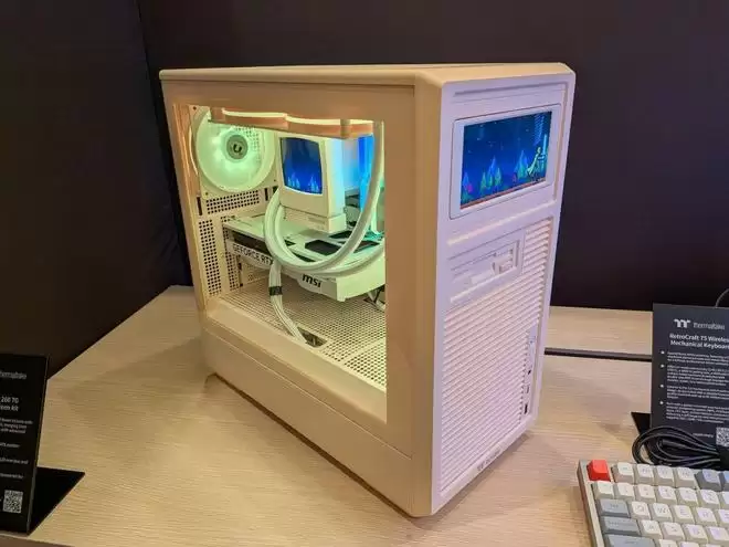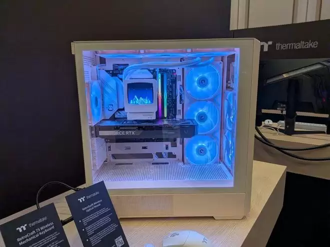 曜越还同步展出了RetroCraft键盘与RetroSwift鼠标,这两款外设在设计语言上与机箱、散热器保持了高度一致。