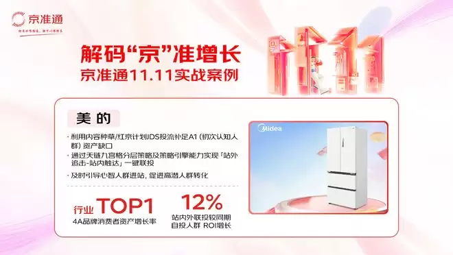 比如国民品牌美的就基于这一方法论,在京东11.11期间通过“用户资产分析-广告触点探查-人群策略下钻-站内外联投提效”四大步骤,实现全域经营提效。