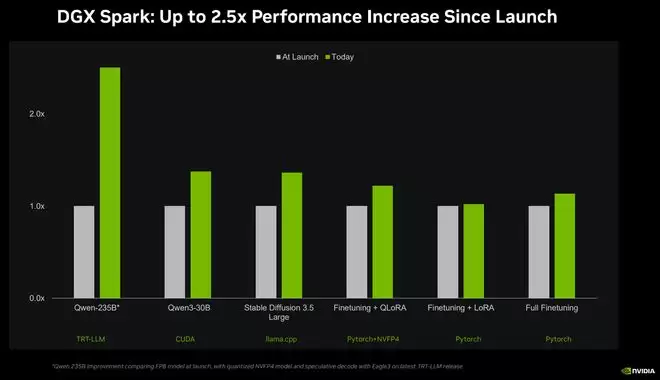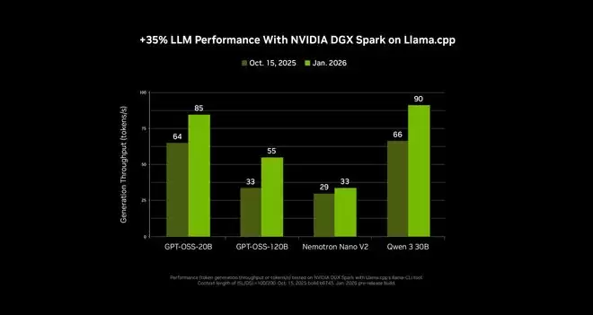 此外,得益于英伟达与开源社区(如llama.cpp)的深度协作,该系统在运行SOTA(最先进)模型时平均性能提升了35%,并显著加快了大语言模型的加载速度。