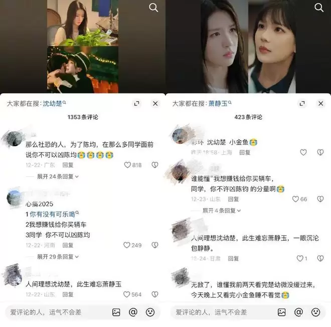 一个是红白玫瑰,一个是BE美学,显然都比大团圆更令人放不下、更产生讨论欲,从而推翻“沉默的男性受众”定律。