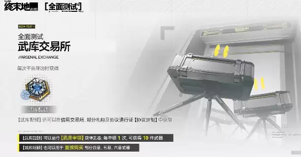 每次参与干员寻访,不论是基础寻访还是特许寻访,玩家都能获得武库凭证。若觉得累积速度较慢,还可使用协议通行证内的配给兑换功能。协议通行证分为三类,即便是免费的基础配给,也能提供足够的材料兑换凭证,对于零氪玩家而言也无需过于焦虑。第二步自然是选择武库单抽或十连抽——在收集到足够凭证后,即可前往武库交易所进行抽取。每次单抽消耗1张凭证,十连则直接获得十件武器,建议优先选择十连抽,获得精品的概率会更加稳定。