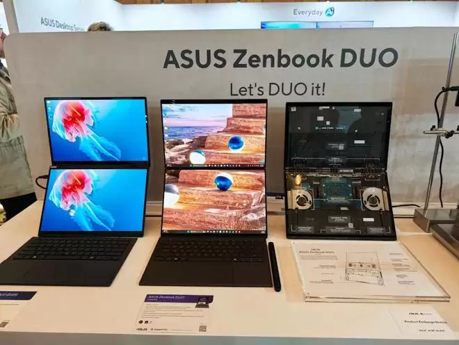 华硕更新灵耀双屏(UX8407AA)机型,采用全航空级铝合金(Ceraluminum)机身,搭载两块14英寸3K OLED屏幕,均标注“Lumina Pro”标识。处理器配备英特尔酷睿Ultra X9 3系列,搭配双电池设计,总容量99Wh。重新设计的散热系统采用双高叶片风扇与更大通风口,支持最高45W TDP。