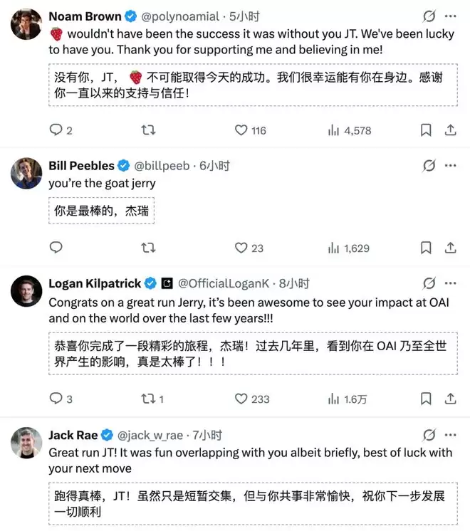 Jerry Tworek离职声明&各位大佬送上祝福