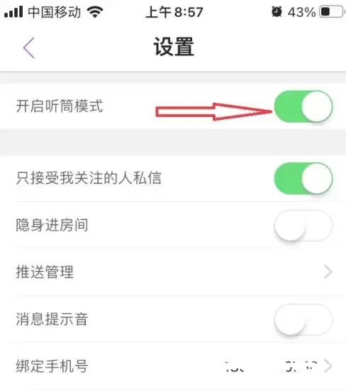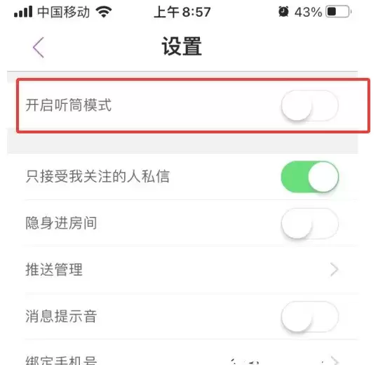 第五步:当开关按钮变为灰色时,就表示蜜疯直播的听筒模式已经成功关闭了,整个操作到这里就全部完成。