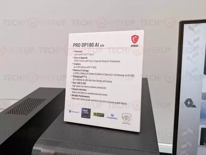 微星还推出了体积为18升的Pro DP180 AI工作站,搭载Intel最新Core Ultra 7处理器及桌面版NVIDIA RTX 5070显卡,IT之家附上相关图片如下: