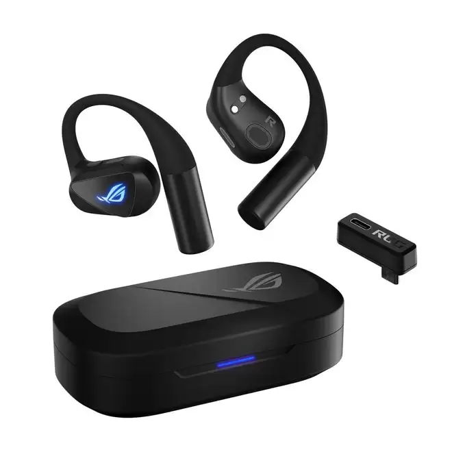 耳机采用符合人体工学的柔软耳挂设计,并配有可拆卸的反光颈带。在连接方面,它支持蓝牙或ROG SpeedNova超低延迟2.4GHz无线技术。通过USB-C接口进行单向充电,耳机可提供长达16小时的续航时间。