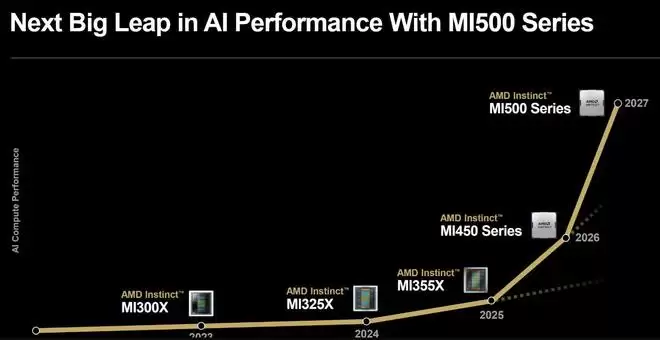 新推出的MI440X AI GPU将适配现有小型数据中心中的紧凑型计算机。苏姿丰还预告了将于2027年推出的MI500系列数据中心处理器。她表示,该系列将提供高达MI300系列(该系列于2024年首次推出)性能的足足1000倍。