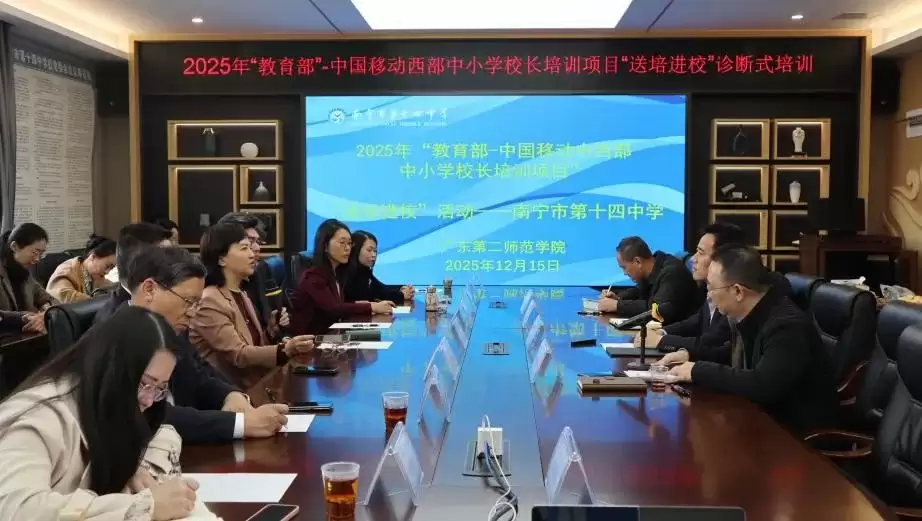 2025年项目“送培进校”诊断式培训环节,于12月在广西进行,教育部全国中小学教师校长培训项目导师、广西壮族自治区教师培训中心专家、中国移动广西公司代表、项目承训专家共同组成送培团队,深入南宁、贵港、钦州、北海的四所“基地学校”展开调研指导。