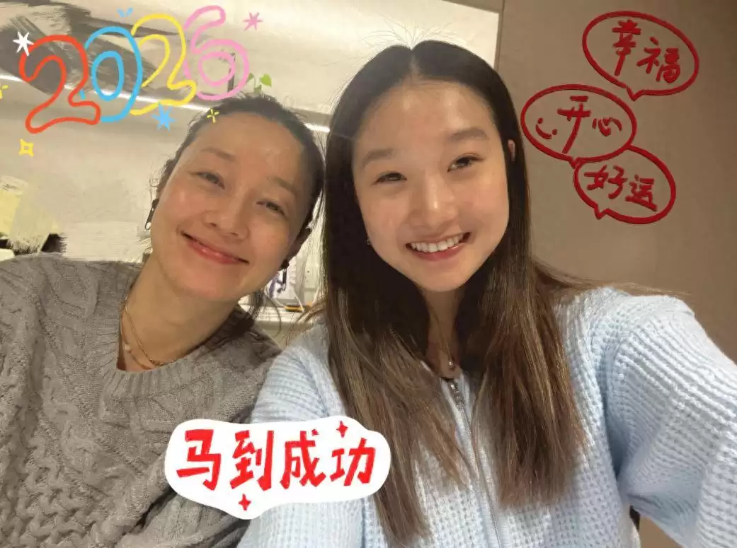 马伊琍新年晒全家福,素颜与女儿合照温馨戴耳环抢镜