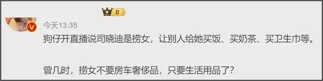 还基本都是小额代付,比如买个奶茶,吃个外卖零食,生理期买点儿生活用品,都是普通日常花销。狗仔拿这些说司晓迪人设崩塌,都给网友们整无语了,让男的买点儿吃吃喝喝就是捞女了?男明星们到底是有多抠啊?