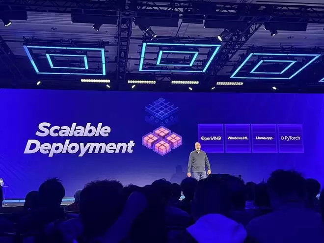 英特尔确保软件能够运行在最完整的一组框架和工具之上,并支持主流的行业部署路径,如LLaMA.cpp和PyTorch;OpenVINO工具在各类计算引擎上提供了可直接投入生产的深度优化;英特尔还将关键的开源优化深度集成进微软Windows ML之中。