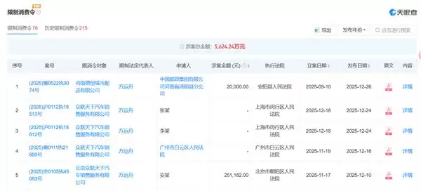 公开资料显示,方运舟本人担任法人的公司中,目前总共生效有76条限制消费令,涉案总金额为5624.24万元,案涉事由除了拖欠供应商货款外,还拖欠有员工工资。据了解,作为国内较早入局的造车新势力之一,哪吒汽车也曾有过高光时刻。2024年哪吒汽车累计销量152073辆,同比增长118%,实现连续29个月的同比增长,力压“蔚小理”,成为首个年销量突破15万辆的新势力品牌,也是当年的新势力销冠。但过了顶峰就是下坡路,2024年,哪吒汽车销量出现下跌,全年销量为12.75万辆。当年上市的哪吒L,曾被看做是全村的希望,不过哪吒L销量先涨后跌,未能带领哪吒扭转颓势。