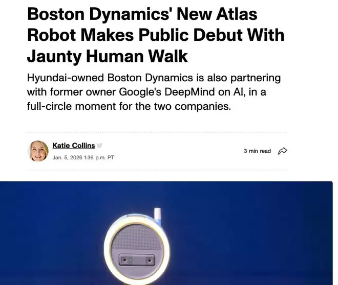 【环球网科技综合报道】1月6日消息,据CNET报道,在2026年国际消费电子展(CES)上,波士顿动力公司展示了其通用人形机器人Atlas的最新版本,同时公布了一系列围绕Atlas的战略布局与合作计划。