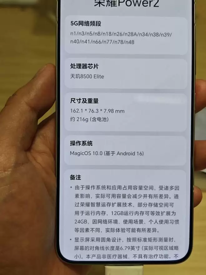 其实从此次的上手体验来说,笔者觉得荣耀Power2还是很不错的,芯片升级到天玑8500 Elite、电池加到到10080mAh。