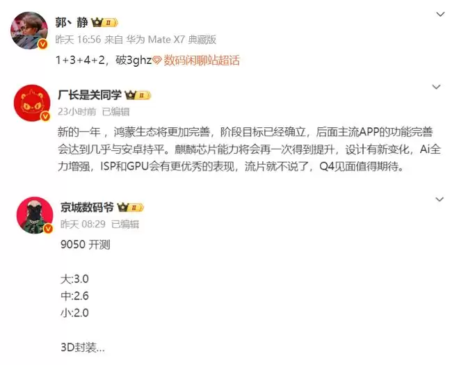 然而这次麒麟9050的爆料却传递出一个截然不同的信号,那就是今年的Mate90系列,发布节奏可能要比往年快了许多。