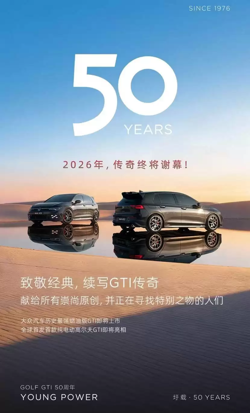 然而时代更迭,汽车行业也在持续革新。到2026年,这款经典的燃情车型将正式告别历史舞台。为了纪念这个具有里程碑意义的时刻,大众汽车推出了高尔夫GTI Edition 50特别版车型,也就是图中展示的第八代产品。