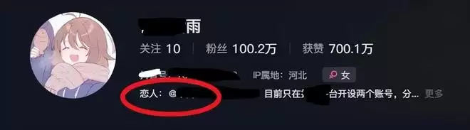 首先看小雨的个人账号,已经涨粉百万,并且简介仍旧是恋人之称,而且还将双方的账号放在上面。