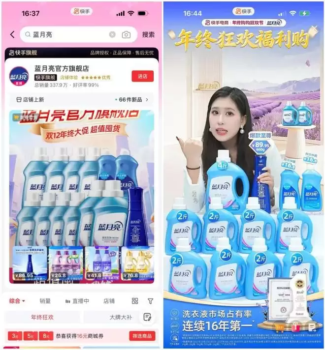 以蓝月亮为例,这家国民家清品牌的核心痛点在于如何高效开拓新线增量市场。蓝月亮相关负责人告诉派代:"快手覆盖了庞大规模的三线及以下城市用户,尤其是北方区域人群,这正是我们想要重点拓展的市场。"这一诉求与快手的人群生态精准匹配。