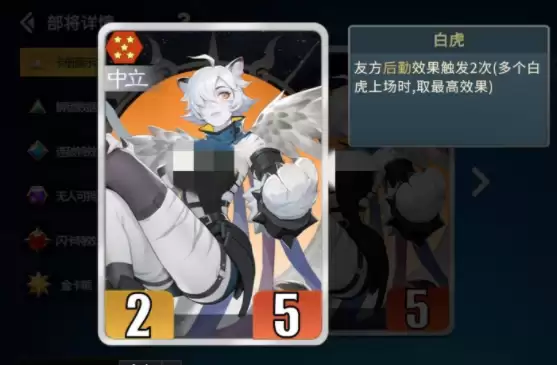 燚龙在游戏中隶属于中立阵营,它拥有一项非常独特的机制,可以直接使用锦囊牌,从而驱动全队所有成员的战斗力提升。每进行一次对战,玩家都可以触发一次效果。这种独特的特性,让它完全可以成为整个队伍的核心。在挑战过程中,可以给它搭配白虎和白泽。白虎同样是中立阵营里的一个角色,使用白虎之后,可以直接让原有的后勤效果翻倍。白泽还可以随机获得两个锦囊。有了这两个角色的搭配,可以让整个队伍赢得更稳定。配合锦囊的联动,可以在游戏过程中快速压制对手。