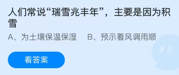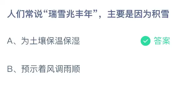 瑞雪兆丰年,人们常说是因为积雪?支付宝蚂蚁庄园1月7日答案揭晓