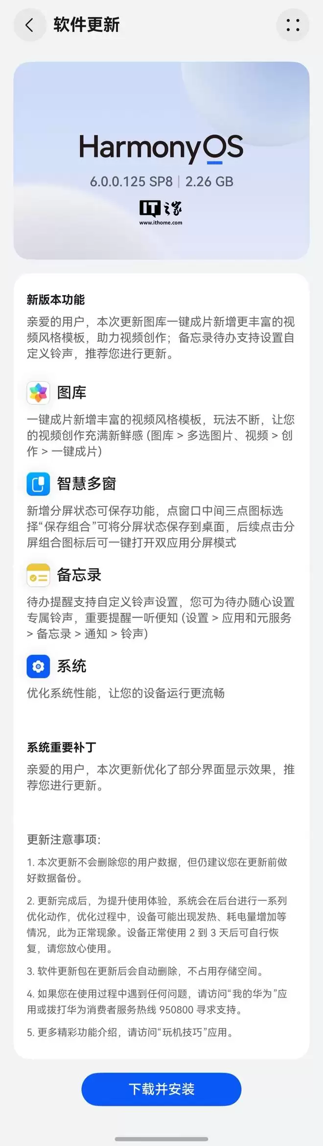 IT之家1月7日消息,华为今日正式向Mate 60/70、Pura 70/80以及nova 12 Ultra等多款机型推送HarmonyOS 6.0.0.125版本更新。此次升级包大小约为2.26GB,主要新增了更丰富的视频风格模板与备忘录音自定义铃声功能,进一步优化了系统体验。