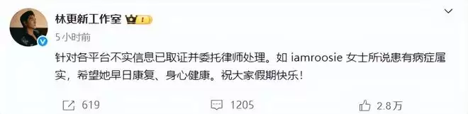 相较于其他男艺人的工作室声明,林更新工作室显然是没把这件事当回事,一副事不关己的状态。