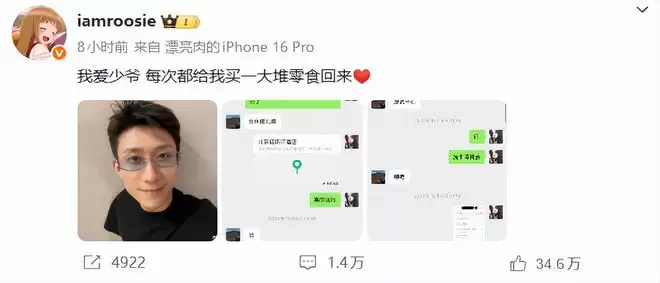 iamroosie一连晒了多张与微信名为林更新的聊天记录,仔细翻看并未发现有任何暧昧或者出格的聊天,更像是两个还不太熟悉的朋友间的调侃。