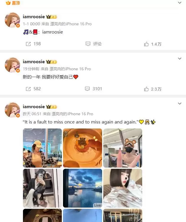 到此,似乎这个iamroosie点名的所有人,以及涉及到的所有事都是捏造并无事实,可她在微博上的那句留言“所有顶流都睡完了,人生没有遗憾”,震撼还是巨大的。