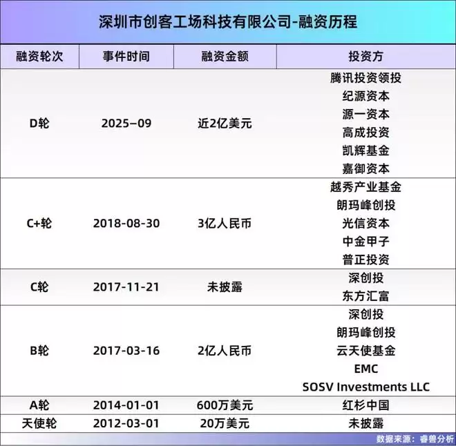 xTool整合了深圳创客工场的业务,创客工场的投资机构也转为xTool的投资机构。2025年,xTool完成了腾讯领投的约2亿美元D轮融资。