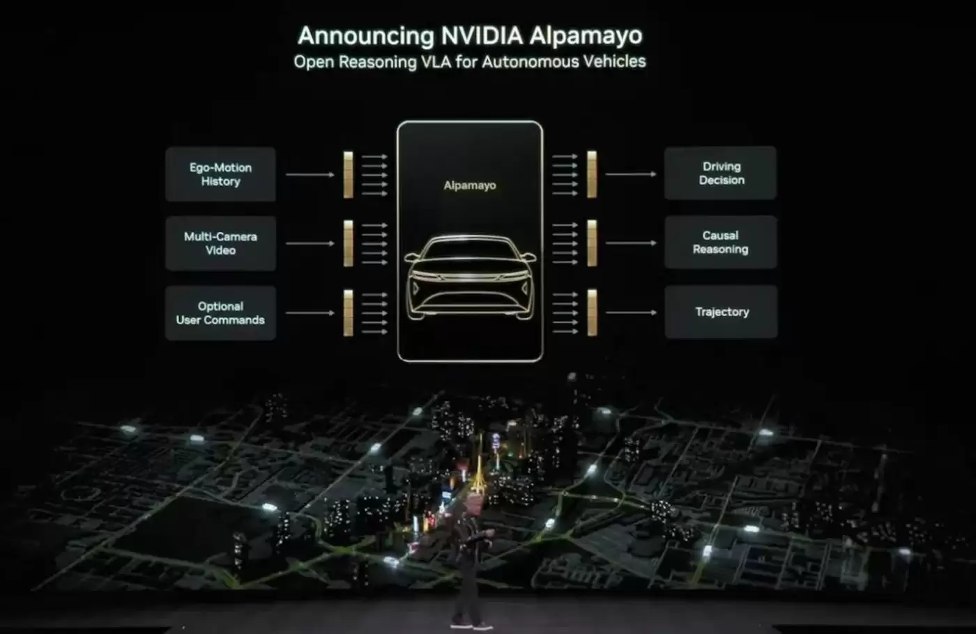 这场发布会上,英伟达并非推出一款简单的芯片,而是一套名为Alpamayo的完整自动驾驶生态体系——包含开源大模型、全球驾驶数据集与高保真仿真框架。