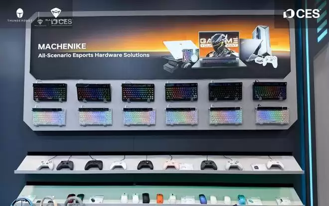 除此之外,雷神还带来两款mini主机新品:一款为全新工作站THUNDEROBOT MIX STATION迷你主机亮相,搭载 AMD Ryzen™ AI Max+ 395 处理器,满足AI运算生成、视频剪辑后期等多样化使用需求;另外一款雷神MIX G2独显游戏迷你主机,作为行业首款Ultra 9 275HX + RTX5090LP的游戏mini主机,约3L体积下性能释放高达230W,重塑Mini PC的性能疆界。外设品类中,雷神Shadow Hunter EX68光轴键盘首发亮相CES,采用模拟光轴技术,响应更快、手感更稳。机械师则发布了全新MINI AI主机MINI GTS,内置Ultra 9 285H处理器,NPU算力48 TOPS,可本地运行生成式AI应用;机械师F1电竞手柄,在有线与2.4G无线双模下,均支持8000Hz超高回报率,专为FPS玩家打造。