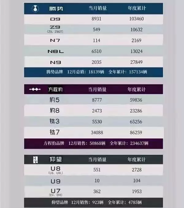 高端化战略同样取得突破性进展。腾势品牌全年累计销量达15.7万辆,D9车型持续领跑高端新能源MPV市场,N8L与N9组合成功切入大六座SUV细分领域。方程豹品牌异军突起,凭借23.46万辆车年销量走出差异化发展路径。仰望品牌在超豪华市场实现历史性突破,U8、U9、U7三款车型全年累计销量达4,785辆,改写了自主品牌在该领域的空白。