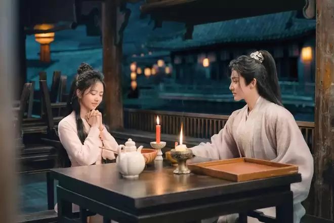 故事的最后,女主角主动提出她可以使用时光倒转之术,想要再次回到过去。于是,在大结局的时刻,她又一次回到了两人初次相遇的时间点。剧中谭松韵一人分饰两角,分别是少女肖瑶和宁安,其实两人是位于不同时空的同一个人。因此剧情刚开始时,观众看到红煊带着与宁安相爱的记忆去和肖瑶相处,难免会觉得有些别扭。毕竟他和宁安曾经那样深爱,甚至还有观众猜测,这会不会又是另一段“菀菀类卿”的设定呢?