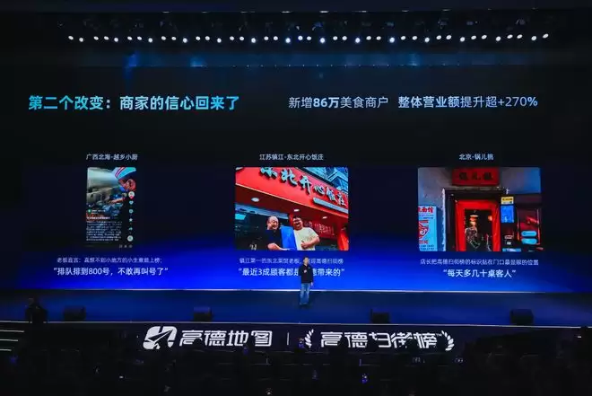回顾过去100天,高德扫街榜上线当日就获得了4000万用户数,并在不到一个月时间就达到了日均活跃用户数7000万,同时,86万入驻商家的平均营业额环比增长超270%。这意味着,无论是在用户的拉新、留存还是在为商户经营增效,高德扫街榜都体现出了极高的价值。