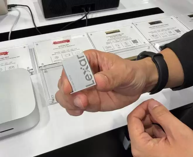 雷克沙展台,展示了基于「AI Storage Core」架构的战略级新品;该架构具备大容量、高速度、热插拔等特性,衍生的 AI-Grade 系列产品将全面应用在 AI PC、智能机器人及 AI 拍摄等场景。