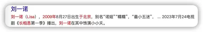 有个问题是《长相思》演员表中扮演女主小夭小时候的也有一位叫刘一诺,这看起来就更吓人了。但是那位刘一诺的百科资料是童星,2009年出生。而这位和檀健次交往的刘一诺小红书里写了自己的从艺经历,曾经想在SM当练习生但后来还是艺考上电影学院了,没有提到自己参演《长相思》的经历,看起来应该是重名了。