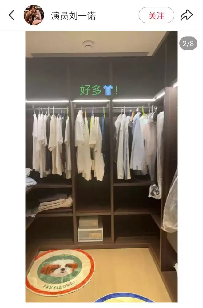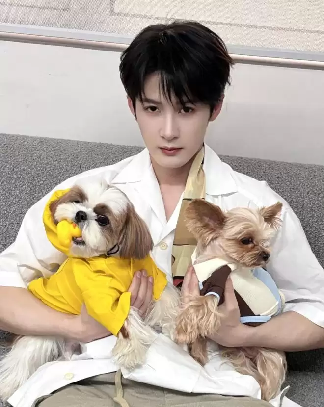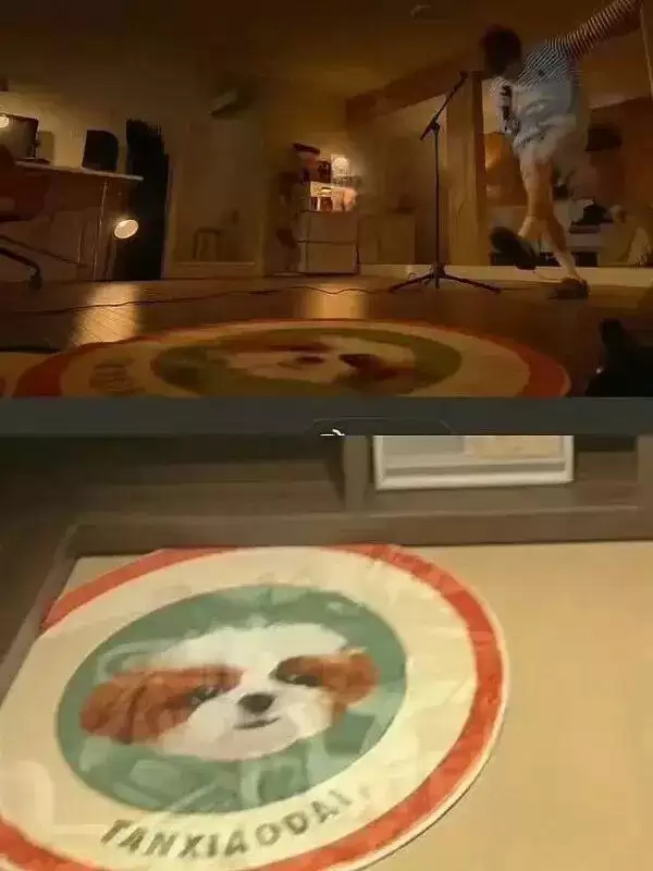 她晒的衣帽间有一个写着“TANXIAODAI”的小狗图案地垫,而檀健次养了两条狗,其中一条叫“檀小呆”。