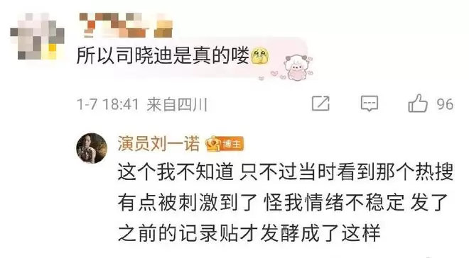 刘一诺也在评论区承认了是受了司晓迪爆料的刺激。