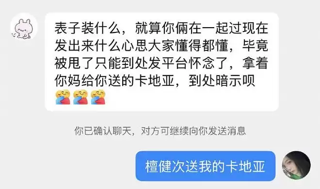 有檀健次粉丝继续攻击刘一诺是“婊子”(这太糟糕了),刘一诺直接回复:“檀健次送我的卡地亚。”