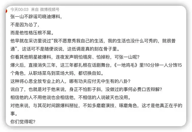 街边尿尿被狗仔拍到、因为劈腿而遭到宋妍霏分手的张一山,出现在司晓迪名单里,他根本连辟谣都没,就是没有反应。因为他又有资源,又没有对家,他还有那几个粉也会说他好话的。