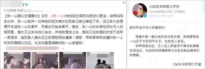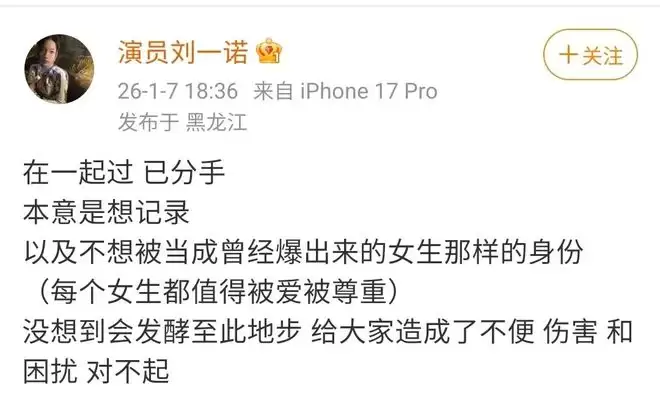 于是刘一诺直接发微博承认恋情并称已分手。