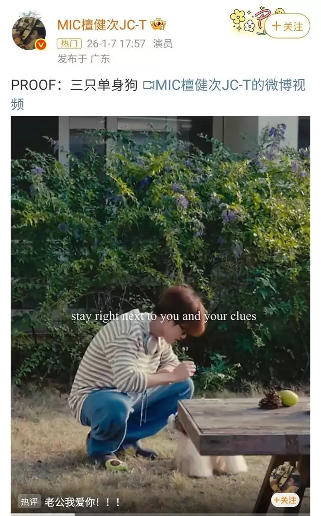 绯闻发酵后,檀健次在微博借着晒狗视频称自己单身。热评是“老公我爱你”。粉丝无条件相信男偶像没有性生活,就像古人无条件相信地球不可能是圆的。