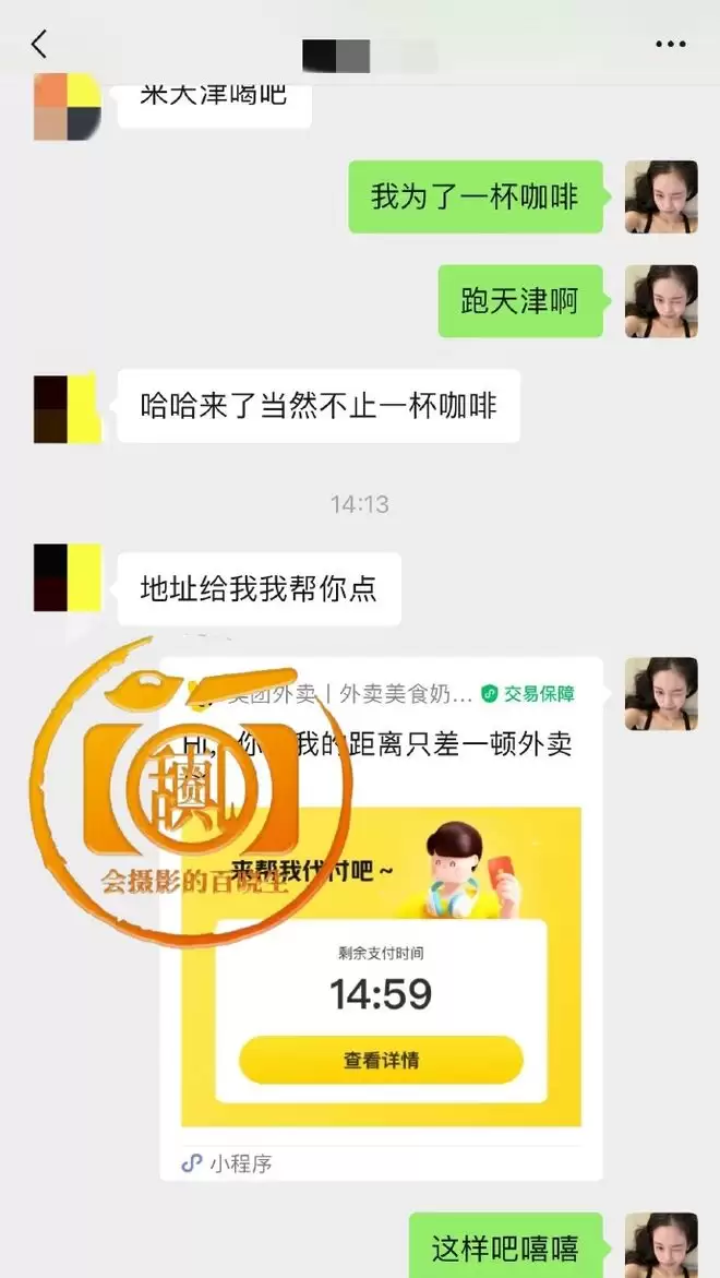 有男的不想请杯饮料喝却想司晓迪立刻(自费)去天津找他。